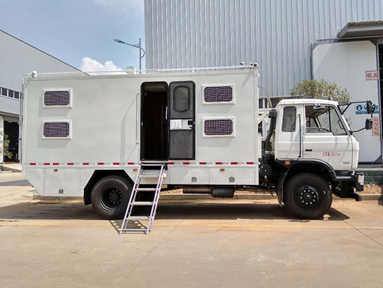 三、東風(fēng)四驅(qū)越野宿營車, 4驅(qū)越野宿營車用途:適用公安、特警、公安、邊防、衛(wèi)生、交通、礦山、地質(zhì)、軍隊等部門]長期野外作業(yè)、勘察、救援、搶險、救災(zāi)等宿營用,箱體空間利用大化。內(nèi)部配置:配備前儲物柜、后儲物柜、液晶電視機應(yīng)急燈、頂燈、頂置空調(diào)、床墊、被褥等。選裝配備8組豪華折疊臥鋪、未鋪上下梯、安全保險帶、電源插口等,細(xì)節(jié)精致。外置燃油加熱器、頂護欄、前爬梯、隱藏抽拉梯、專用房車門、專用玻璃滑窗、警示燈等。
