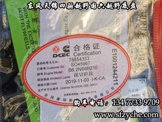 國(guó)六排放東風(fēng)天錦四驅(qū)越野底盤正式下線了,東風(fēng)天錦4*4驅(qū)動(dòng)國(guó)六越野卡車底盤采用:東風(fēng)天錦D530一排半駕駛室,4×4驅(qū)動(dòng),康明斯B6.2NS6B210國(guó)六發(fā)動(dòng)機(jī)210馬力,韶齒六檔變速箱,東風(fēng)商用車橋,前驅(qū)動(dòng)橋3.8噸,后橋10噸,10.00R20輪胎,軸距4500mm/4700mm,電動(dòng)玻璃,方向助力,斷氣剎,ABS,大燈自動(dòng)調(diào)節(jié),自動(dòng)調(diào)整臂,選裝原廠空調(diào)。
