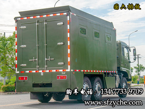 國(guó)六東風(fēng)天錦大型野戰(zhàn)自行式炊事車下線了,東風(fēng)6驅(qū)森林消防飲食保障車_六驅(qū)森林消防炊事車_撲火隊(duì)專用餐車是森林消防隊(duì)員野外執(zhí)行森林火災(zāi)救險(xiǎn)任務(wù)中,為提高后勤保障能力,改善野外生存條件而研制的一種新型自行式炊事車,特別適應(yīng)快應(yīng)急消防任務(wù)。采用東風(fēng)軍用二類汽車底盤改裝而成的后勤飲食保障裝備,該車機(jī)動(dòng)性能好,專業(yè)性強(qiáng),自動(dòng)化程度高,自然環(huán)境適應(yīng)性強(qiáng),并能在駐車和行車時(shí)進(jìn)行炊事作業(yè),可保障執(zhí)行野外任務(wù)部隊(duì)的飲食和飲水供應(yīng).備注:據(jù)用戶需求,整車對(duì)底盤進(jìn)行改裝,設(shè)有8-13Kw駐車自發(fā)電系統(tǒng),1.5Kw行車發(fā)電系統(tǒng),以及配電系統(tǒng),主副食控制系統(tǒng),作業(yè)監(jiān)控系統(tǒng),水路系統(tǒng),油路系統(tǒng), 附件及工具。車廂內(nèi)可安裝主食灶、副食灶、和面機(jī)、切菜機(jī)、冷凍儲(chǔ)物柜、排油煙機(jī)、儲(chǔ)物吊柜等炊事設(shè)備。