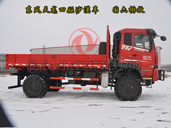 全新國六東風(fēng)四驅(qū)六驅(qū)沙豹沙漠車為特殊行業(yè)精心打造,適合全地形無路區(qū)域的全時(shí)4×4、6×6驅(qū)動(dòng)車型,選用康明斯9升國六發(fā)動(dòng)機(jī),動(dòng)力涵蓋340---400馬力,動(dòng)力強(qiáng)勁、性能可靠,采用7噸及10噸級(jí)雙級(jí)輪減前、后橋,離地間隙大、通過性好,前、中后橋配備輪間、軸間差速鎖裝置可適應(yīng)極惡劣道路狀況下的通過要求,先進(jìn)的遠(yuǎn)距離電控氣動(dòng)裝置可實(shí)現(xiàn)高、低檔及前橋鎖止功能的轉(zhuǎn)換,多管旋流式三級(jí)空濾進(jìn)氣系統(tǒng)可有效地阻止極細(xì)微的粉塵進(jìn)入發(fā)動(dòng)機(jī),外接式中央充放氣裝置可同時(shí)或單獨(dú)快速調(diào)節(jié)輪胎氣壓,越野和沙漠輪胎的互換可使車輛通過性適合各種地形地貌,選裝前后液壓絞盤等裝置能使車輛在各種環(huán)境下保持良好的狀態(tài)及自救互救功能,沙漠車使用工況:用于無路地域的貨物運(yùn)輸,適應(yīng)沙漠、浮土、戈壁、礫石、泥濘、山地、崎嶇、冰雪等路況。耐溫±45℃,可作為石油物探、地質(zhì)勘查、大地測(cè)量、文物考古、草原監(jiān)理、畜牧防疫、森林消防、邊境巡邏、沙漠旅游等行業(yè)用車,是改裝專業(yè)工程車如:地震儀器、爆破器材運(yùn)輸、沙漠冷藏、沙漠隨車起重運(yùn)輸、工程搶險(xiǎn)、林業(yè)吊運(yùn)、搶險(xiǎn)救災(zāi)等車輛及越野房車的理想底盤。