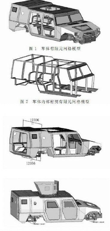 上圖是1代猛士裝甲車車身結(jié)構(gòu)簡圖(由于長軸2代猛士仍然處于測試狀態(tài),引用1代猛士裝甲車結(jié)構(gòu)進(jìn)行比對說明),為了提升整車鋼性以及安全防護(hù)能力,上部分的車身焊接采用單獨(dú)全封閉結(jié)構(gòu)(側(cè)圍、頂蓋、地板預(yù)先焊裝一體)。在A/B/C/D柱之間焊裝多條加強(qiáng)筋保證縱向結(jié)構(gòu)強(qiáng)度。與美軍現(xiàn)役悍馬裝甲車(通過對基型車換裝裝甲板)不同的是,1代猛士裝甲車原廠狀態(tài)就采用可防護(hù)7.62毫米口徑穿甲彈在100米內(nèi)全向攻擊、12.7毫米口徑機(jī)槍彈正面攻擊、3公斤TNT當(dāng)量爆炸物地面攻擊、以及105毫米口徑榴彈破片50米內(nèi)攻擊的均質(zhì)裝甲板。