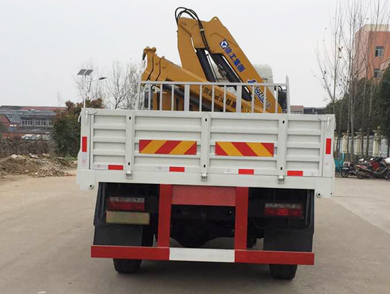 2. 采用徐工5噸折臂式隨車吊,SQZ105型徐工原廠吊機,最大起重質(zhì)量5噸,三節(jié)臂,舉升高度11米,工作半徑8米,全液壓,全回轉(zhuǎn),車廂尺寸4.25米,遠程油門控制,下操作。