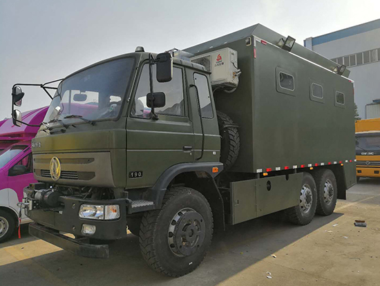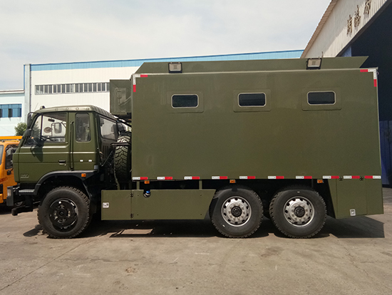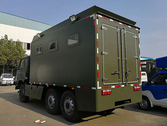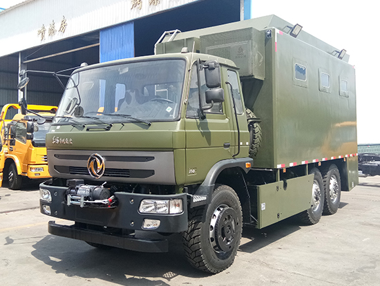 東風國五六驅(qū)越野自行式炊事車_東風軍用六驅(qū)炊事車_六驅(qū)野戰(zhàn)自行式餐廚車為部隊提供一種機動、高效的專用現(xiàn)場飲食保障裝備,滿足部隊平時及野外值勤時的主副食的飲食保障工作,并解決部隊行進中不停車做飯菜的需要及供應(yīng)飲用水的需求。六驅(qū)自行炊事車功能簡介:該裝備主要編配于部隊,為部隊官兵野外作業(yè)時提供良好的飲食保障:具有制作食品、保溫食品和儲存食品的空間與功能、并具有提供開水和餐具消毒的功能。