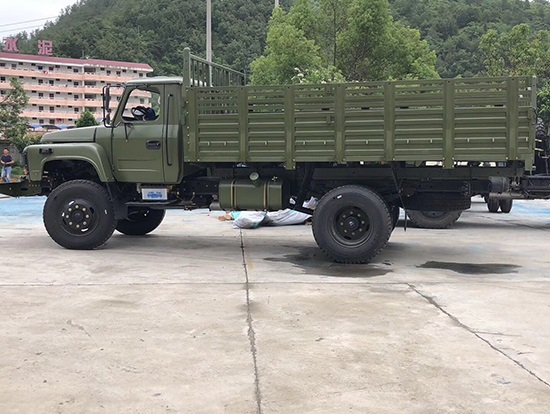 東風(fēng)牌EQ1093F型四驅(qū)載貨汽車詳細配置:采用康明斯B170-33柴油發(fā)動機,機械式六檔變速箱,軸距3950mm,單片干式φ325mm離合器,2.7T驅(qū)動前橋, 7.8T驅(qū)動后橋,232×75×6.5 mm車架,9.00-20尼龍?zhí),東風(fēng)140尖頭單排駕駛室,斷氣剎,動力轉(zhuǎn)向。