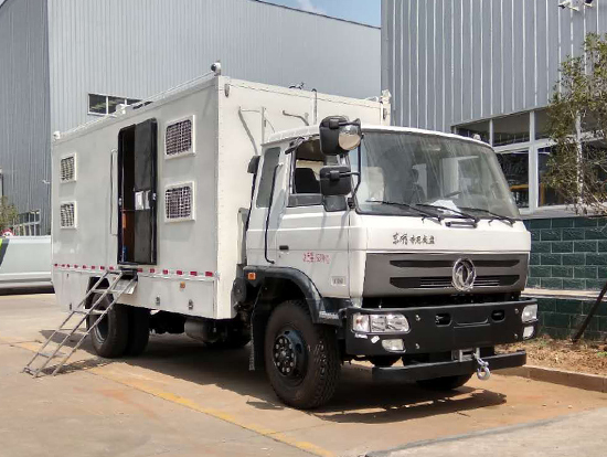 三、東風(fēng)四驅(qū)越野宿營車, 4驅(qū)越野宿營車用途:適用公安、特警、公安、邊防、衛(wèi)生、交通、礦山、地質(zhì)、軍隊(duì)等部門]長期野外作業(yè)、勘察、救援、搶險(xiǎn)、救災(zāi)等宿營用,箱體空間利用大化。內(nèi)部配置:配備前儲物柜、后儲物柜、液晶電視機(jī)應(yīng)急燈、頂燈、頂置空調(diào)、床墊、被褥等。選裝配備8組豪華折疊臥鋪、未鋪上下梯、安全保險(xiǎn)帶、電源插口等,細(xì)節(jié)精致。外置燃油加熱器、頂護(hù)欄、前爬梯、隱藏抽拉梯、專用房車門、專用玻璃滑窗、警示燈等。